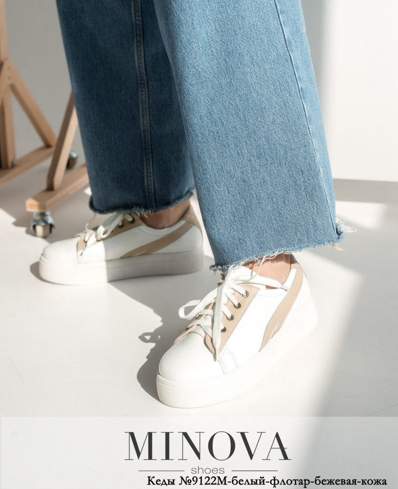 Кеди №9122М-білий-флотар-бежева-шкіра
