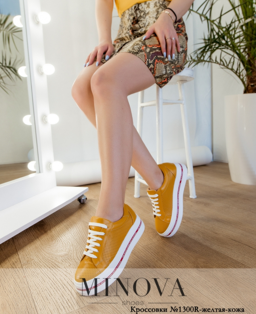 Кроcсовки №1300R-желтая-кожа