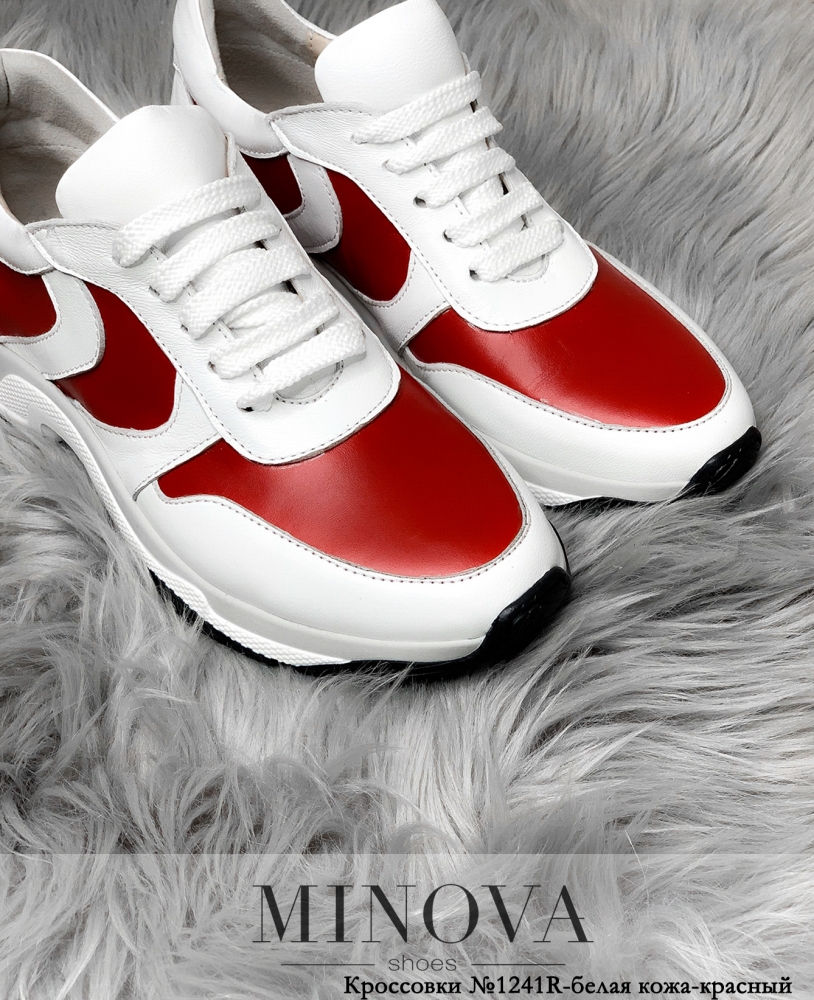 Кроссовки №1241R-белая кожа-красный