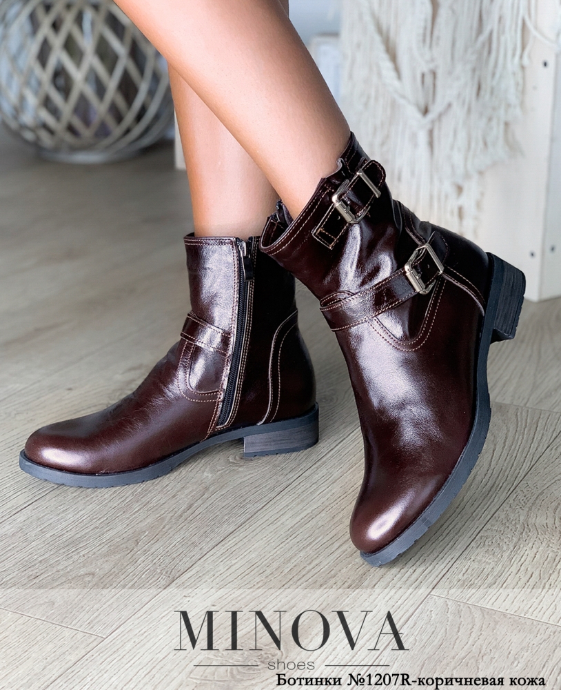 Практичные и удобные высокие ботинки из нового каталога Minova выдержаны в духе Дикого запада: они декорированы двумя декоративными ремешками на подъёме и на манжете, носок и задник отрезные, по внутренней стороне расположена рабочая змейка от верха до подошвы. Подошва гибкая, с небольшим каблуком, который на тон светлее основной части. Рисунок протектора с мелкой ребристостью по краям и небольшими ромбиками в центре. Удачно будет сочетаться с джинсами и создаст контрастный образ с платьем.