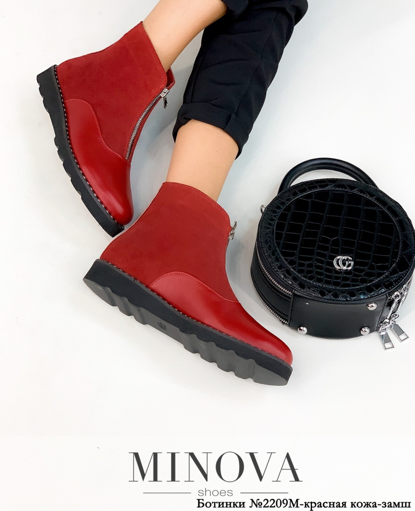 Черевики ЦГ№2209М-червона шкіра -замш