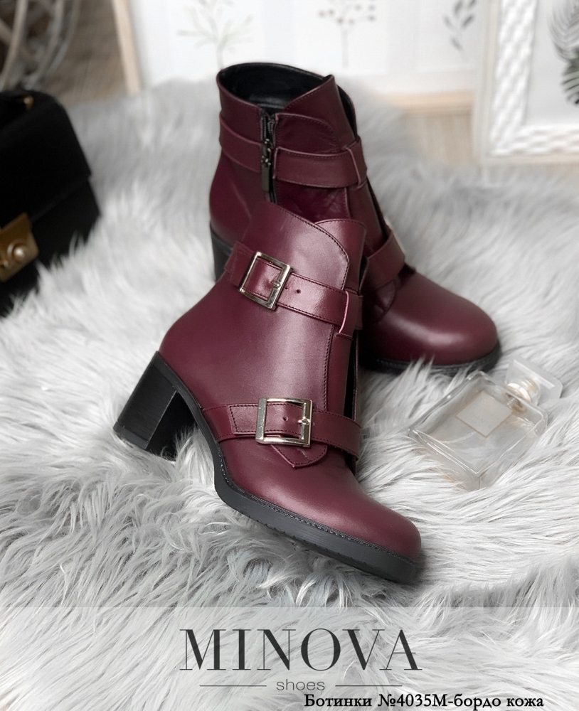Высокие ботинки из новой коллекции Minova привлекательны своим неброским декором: два декоративных ремешка на подъёме и на щиколотке придают им оригинальности. Ботинки из натуральной кожи – гладкой или замшевой, тёмной или блестящей, в зависимости от образа, который вы хотите создать. Внутри – утепление мягкой цигейкой. Застёжка расположена с внутренней стороны, от верха до подошвы. Каблук квадратный, невысокий, устойчивый. Рисунок протектора на плотной подошве мелкоребристый. Отличный выбор для городского образа и даже офисного дресс-кода.