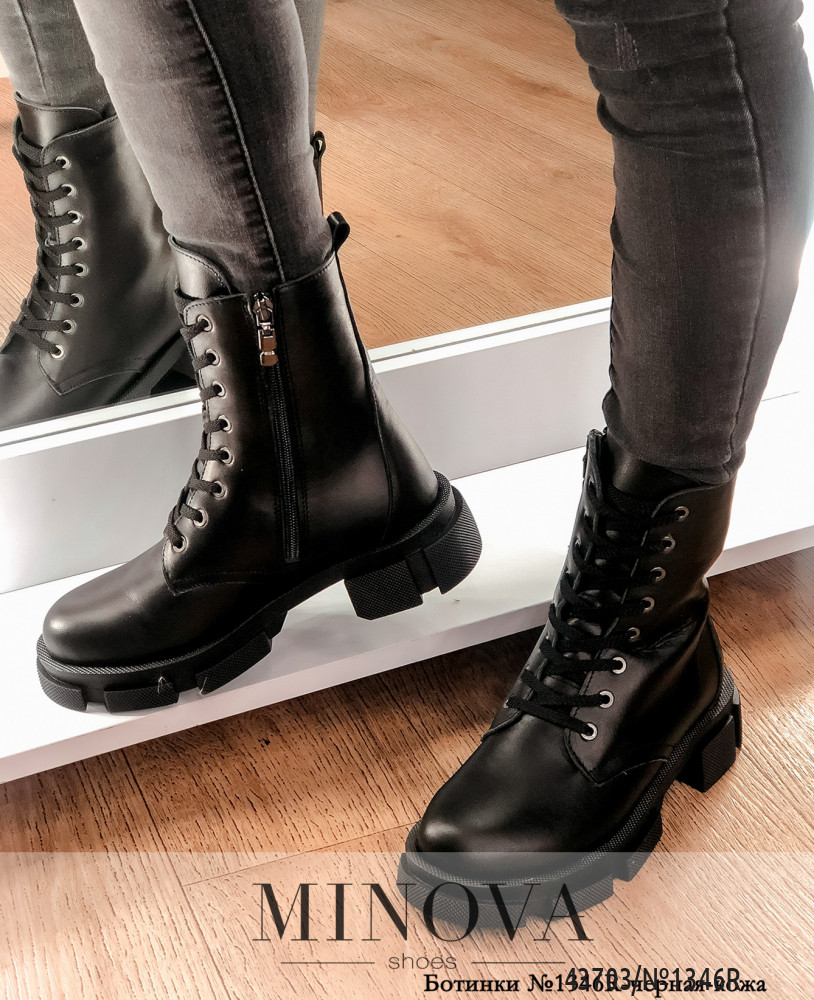 Удобные ботинки из натуральной кожи с утеплением из цигейки, спереди на подъёме - шнуровка, под ней язычок. По внутренней стороне - рабочая молния, сзади подшита петелька. Подошва гибкая, рельефная.