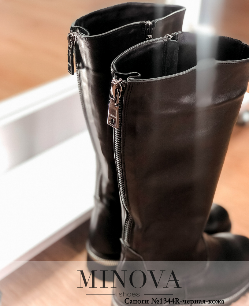 Стильные сапоги из натуральной кожи с высоким голенищем, по внутренней стороне - рабочая молния, на заднем ремне также расположена молния для расширения голенища. Каблук невысокий, подошва рельефная, с контрастной окантовкой.