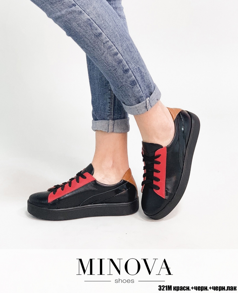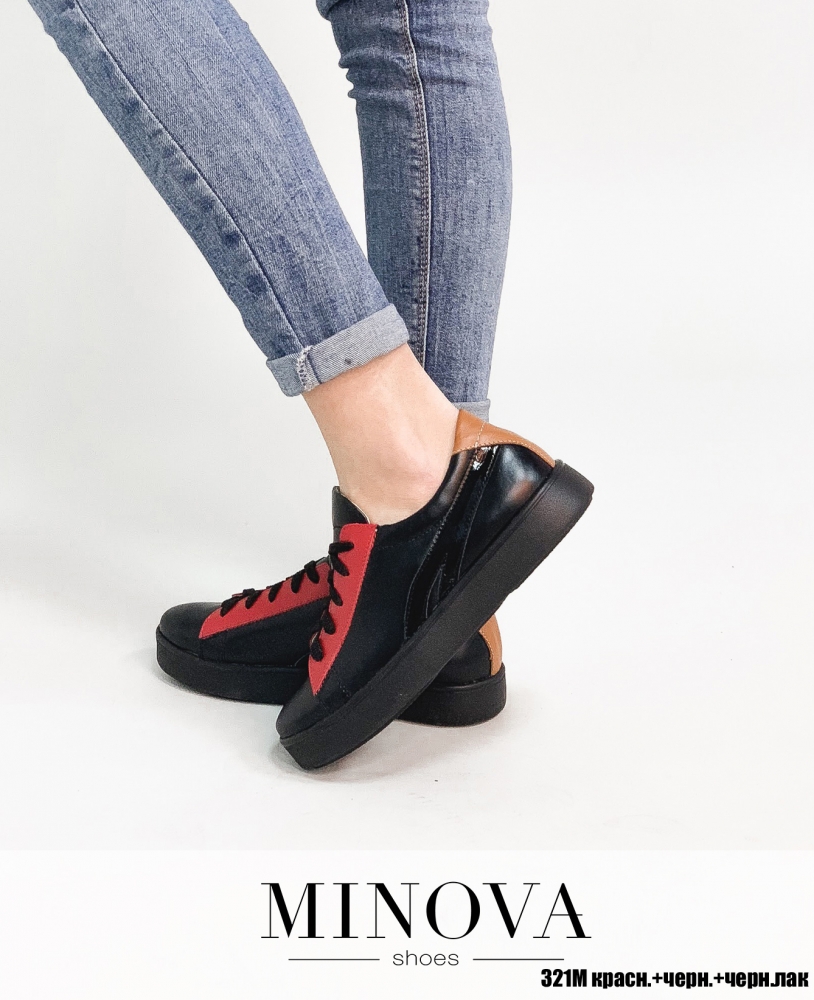 Кожаные кеды на шнурках с контрастными кожаными и лаковыми вставками. Кеды на высокой подошве. Бока, пятка и шнуровка выделены яркими фигурными вставками.