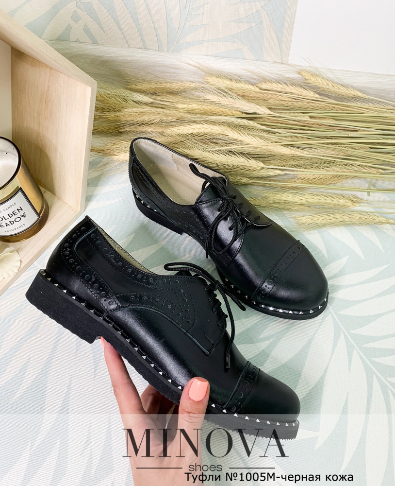 Невероятно стильные броги из свежей коллекции женской обуви от Minova сделают ваш образ поистине незабываемым! Модель из белой кожи с чёрными шнурками и подошвой вообще можно надеть под венец, если вы очень смелая девушка)) Впрочем, и чёрные тоже хороши, а ведь есть ещё и с серебристыми союзками. Брогированием (перфорированием) украшен носок, задник и штаферки. Шнурки тонкие, круглые, с четырьмя отверстиями без люверсов. Кожа натуральная, очень мягкая и приятная на ощупь. Рант подошвы декорирован треугольниками из блестящего металла. Каблучок невысокий, подошва мелко-ребристая. Прекрасный вариант для городского стиля, можно носить с джинсами или брюками.