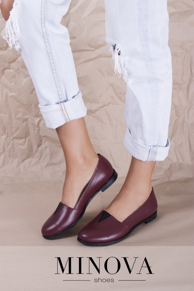 Кожаные лоферы на тонкой подошве и небольшом каблуке. Мыс дополнен резинкой.