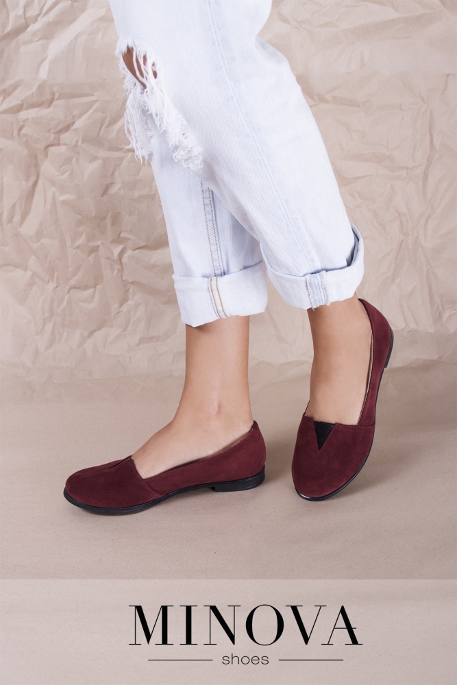 Кожаные лоферы на тонкой подошве и небольшом каблуке. Мыс дополнен резинкой.