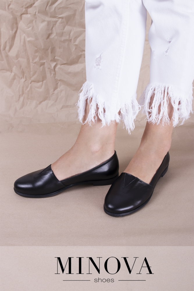 Кожаные лоферы на тонкой подошве и небольшом каблуке. Мыс дополнен резинкой.