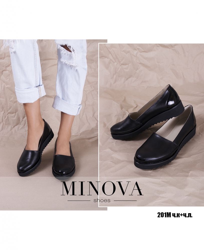 Кожаные лоферы с лаковыми вставками на носке и пяточке на плотной резиновой подошве.