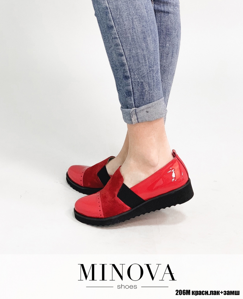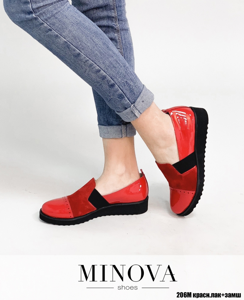 Туфли №206М-красный лак-замш