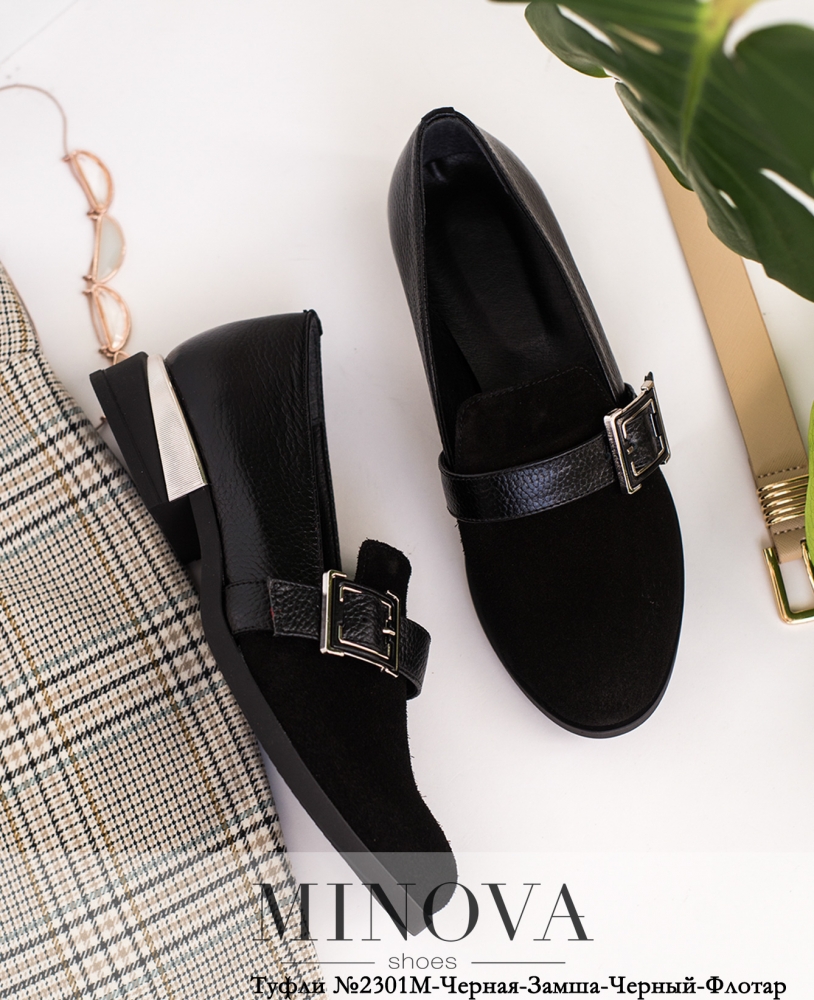Туфли №2301М-Черная-Замша-Черный-Флотар