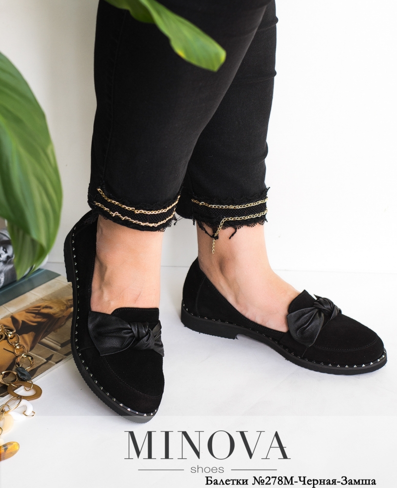 Аккуратные туфли из натуральной кожи для повседневного гардероба, украшенные бантом на подъёме и окантовкой из металлических заклёпок. Каблук невысокий, подошва плоская, с неглубоким рифлением. Без застёжек.