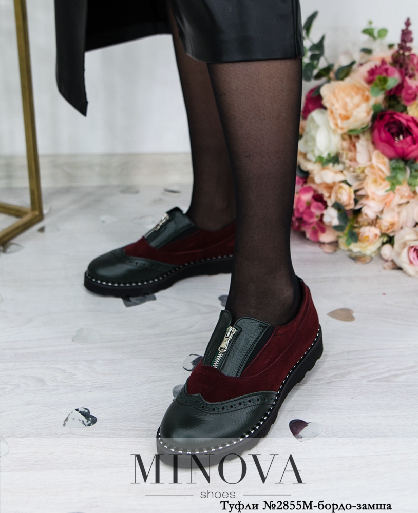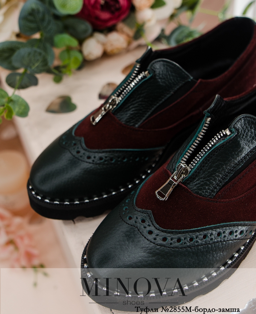 Стильные туфли в "мужском" стиле с брогированным носком. На подъёме - небольшая змейка и вставки резинки по бокам. Подошва волнистая, по ранту украшена металлическими вставками. Туфли выполнены из натуральной мягкой кожи. Высота танкетки впереди: 1.5 см.