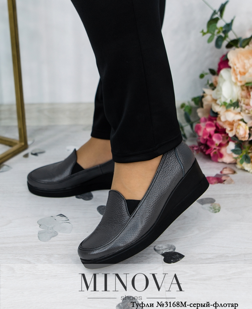 Стильные туфли для базового гардероба, без декоративных элементов, только небольшие вставки резинки по бокам от "язычка". Танкетка невысокая. Задник отрезной. Изготовлены из натуральной кожи. Высота танкетки впереди: 2.5 см.