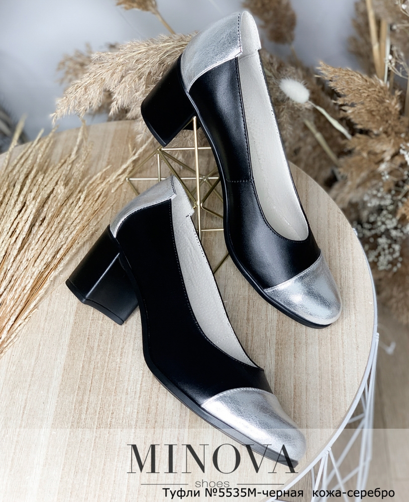 Туфли №5535М-черная кожа-серебро