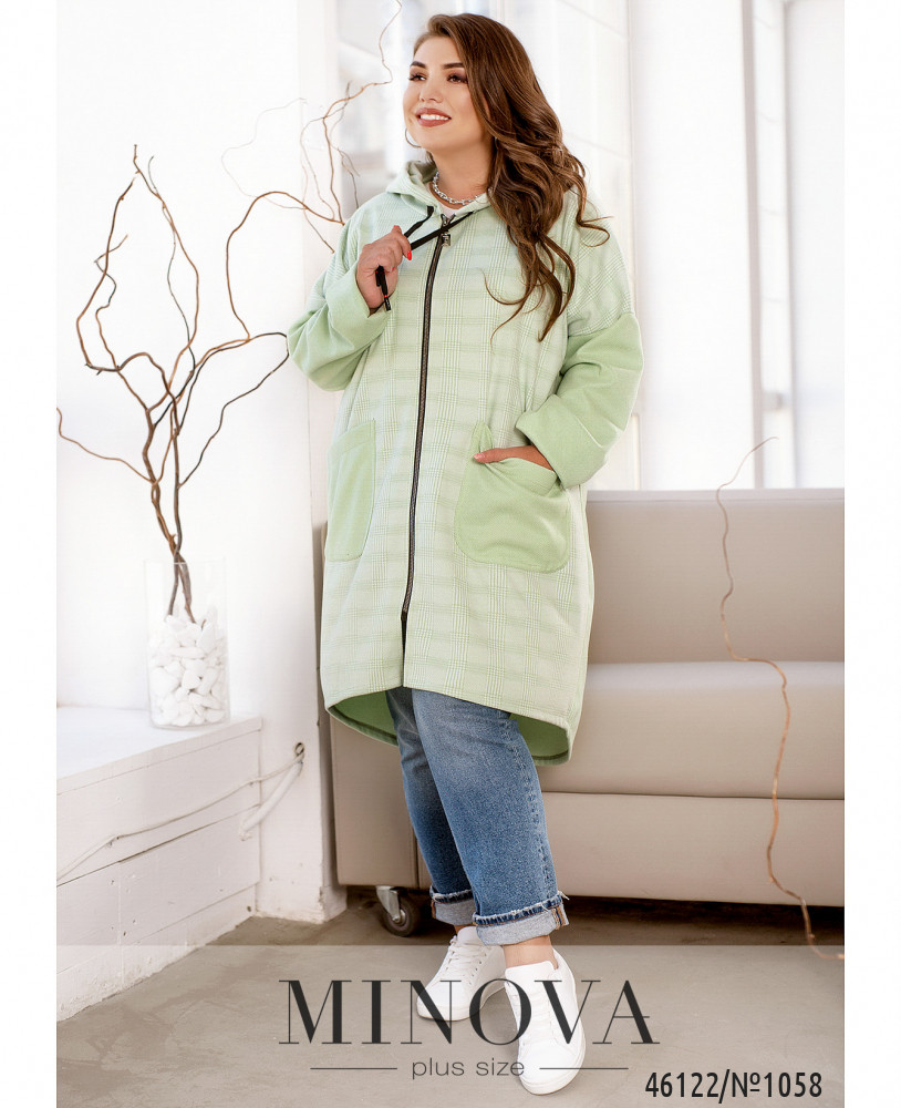 62-64 р-р: длина кардигана 84/102см, длина рукава от плечевого шва 60см, обхват рукава 50см, ОГ - 144см, ОТ -146см, ОБ -150см.