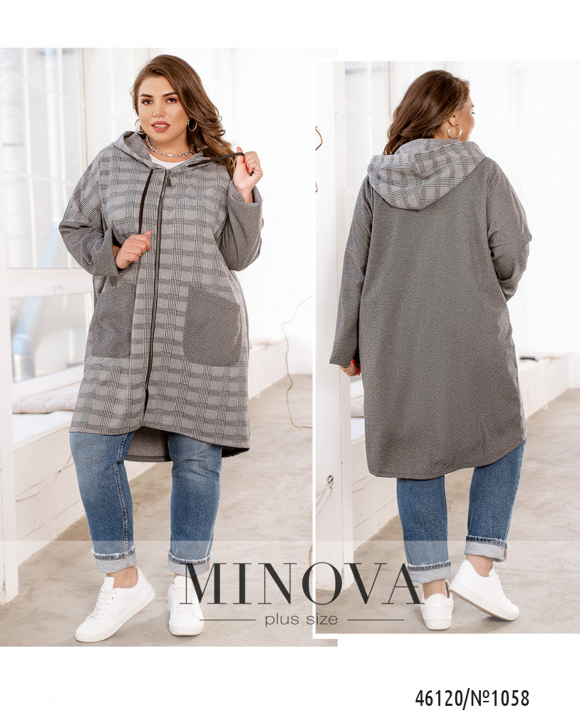 62-64 р-р: длина кардигана 84/102см, длина рукава от плечевого шва 60см, обхват рукава 50см, ОГ - 144см, ОТ -146см, ОБ -150см.