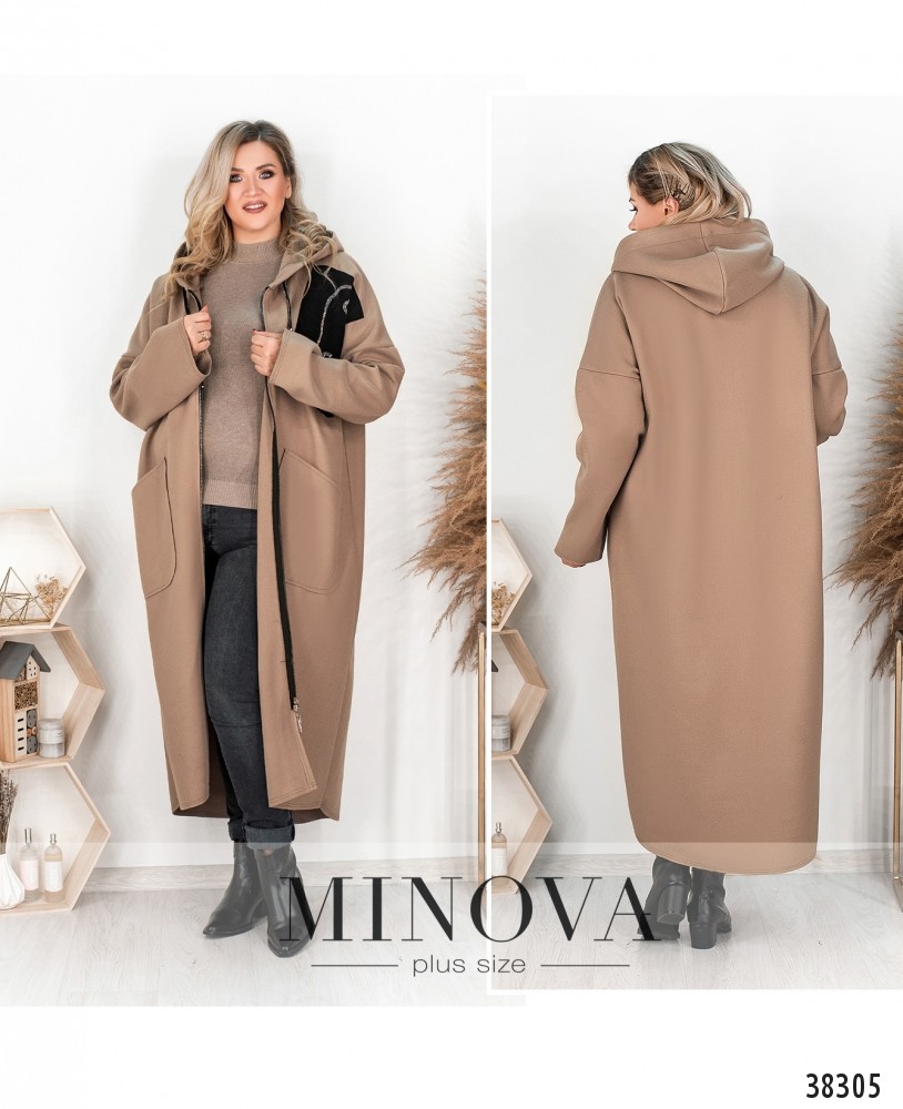 Уютный и удобный кардиган батал с капюшоном, накладными карманами по бокам и молнией по центру. На левой стороне груди – бархатная нашивка, украшенная узором из пайеток. Через капюшон пропущен шнурок. Кофта без подкладки, рукава без манжет.