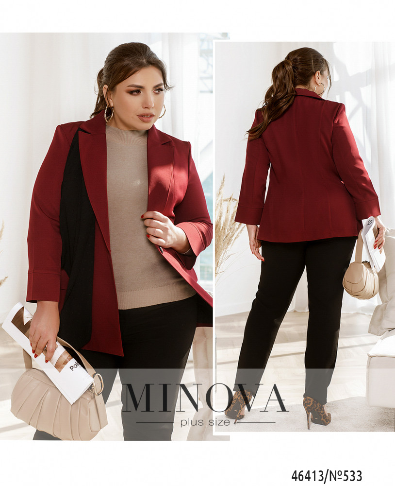 54 р-р: длина пиджака 71см, длина рукава от горловины 68см, длина рукава от плечевого шва 53см, обхват рукава 45см, ОГ - 110см, ОТ -104см, ОБ -116см.