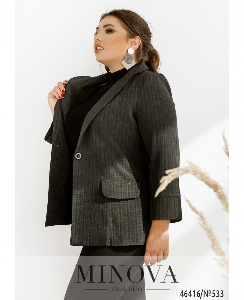 54 р-р: длина пиджака 71см, длина рукава от горловины 68см, длина рукава от плечевого шва 53см, обхват рукава 45см, ОГ - 110см, ОТ -104см, ОБ -116см.