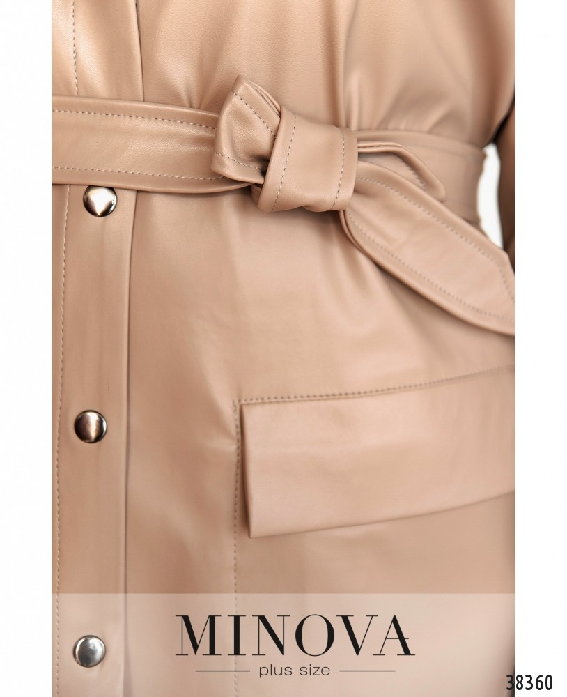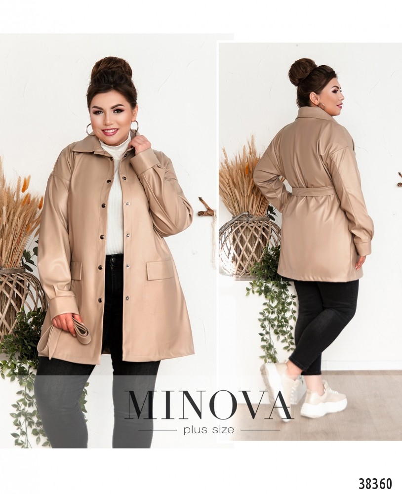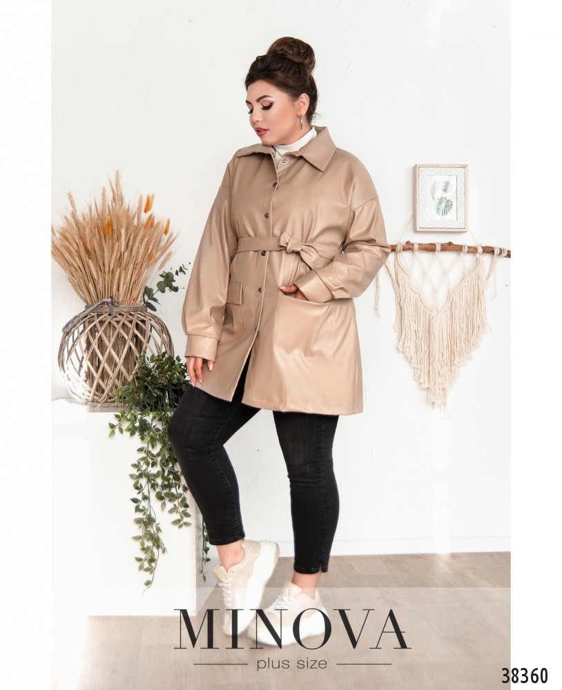 Необычный пиджак плюс сайз в стиле casual с поясом, по бокам – накладные карманы, воротничок отложной, застёгивается на ряд кнопок спереди на планке. Рукава с мягкими манжетами без пуговиц. Есть подклад.