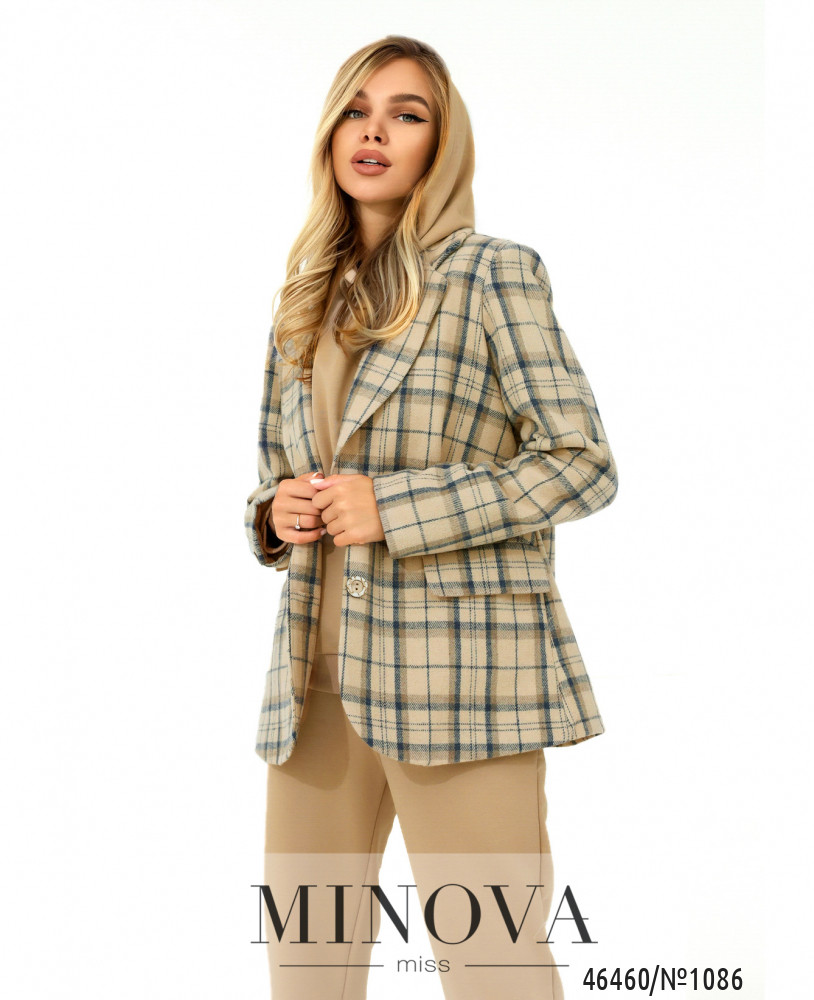 Классический шерстяной пиджак с актуальным принтом в клетку – универсальное решение для любой модницы. Комбинировать его можно по-разному: с рубашками и блузками для создания более строгих образов, со свитерами и топами – для встреч с друзьями или прогулок. Модель на подкладке дополнена карманами с клапанами по бокам.