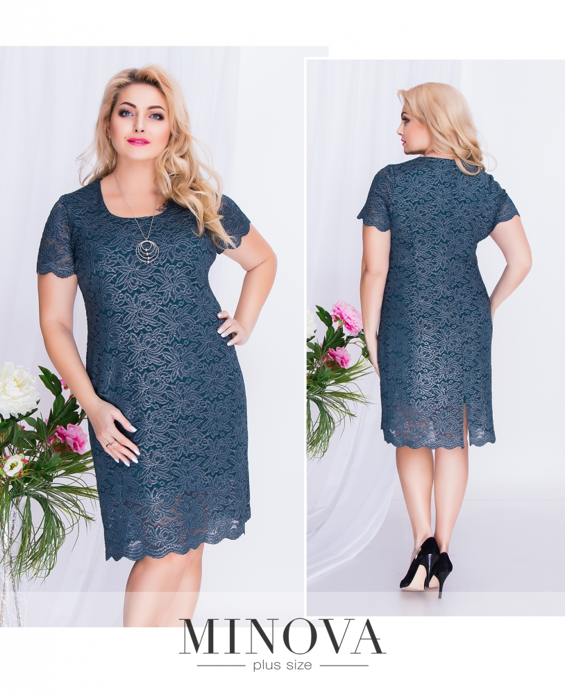 кружевное платье на подкладке, длиной до середины колена с круглым вырезом и
