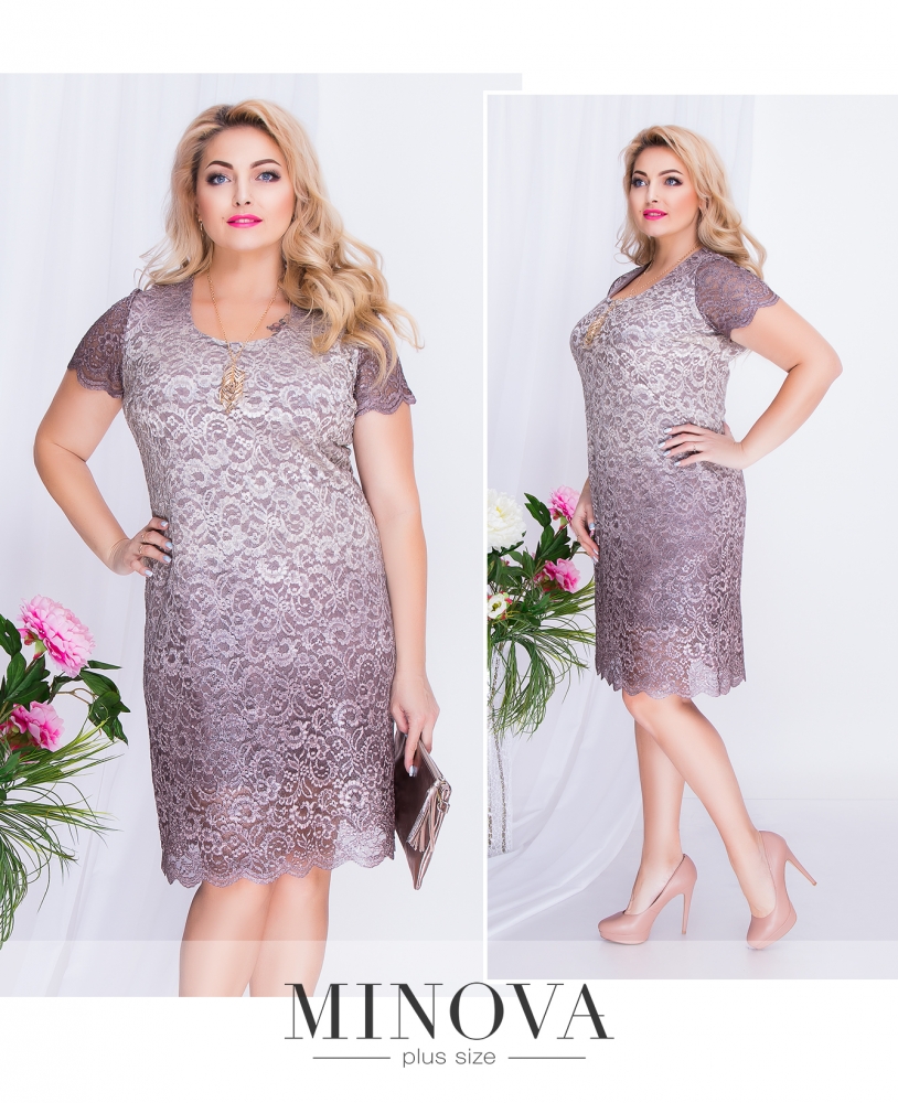 кружевное платье на подкладке, длиной до середины колена с круглым вырезом и