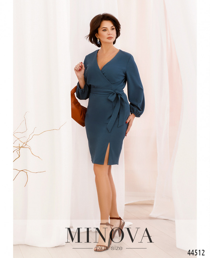 Нежное платье батал с подшитым на запАх лифом, рукава широкие, на манжетах сужены и подшиты на резинки. Застёжка - вшитая по спинке молния. На груди длинные вытачки. Спереди сбоку на подоле небольшая шлица. Карманов нет.