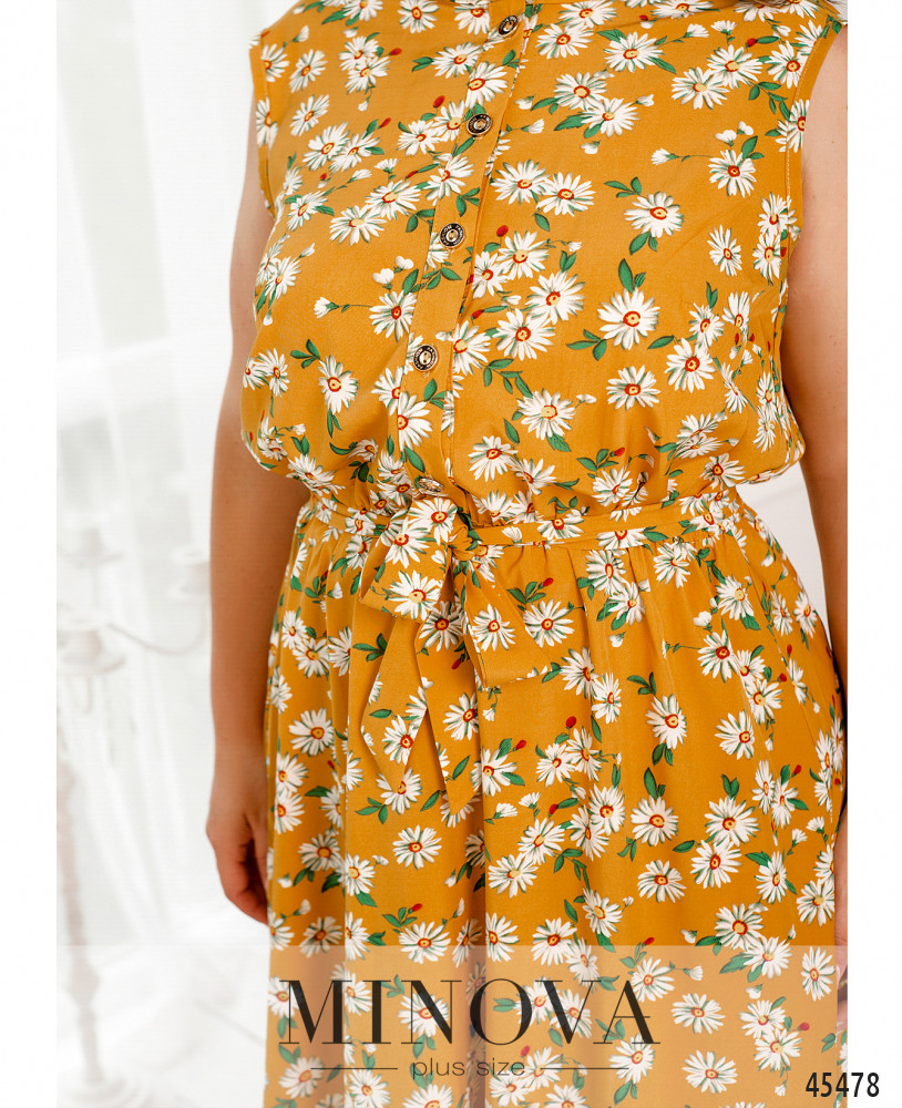 Яркое летнее платье макси с цветочным принтом поднимет настроение и поможет создать легкий женственный образ. Лаконичный лиф с маленьким воротничком, застегивающийся на пуговицы, плавно переходит в воздушный расклешенный подол. Акцент на талии поставит вшитая в нее резинка и пояс, который входит в комплект.