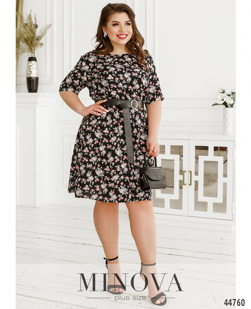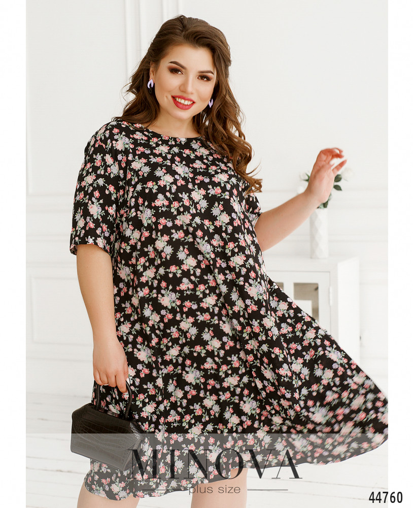 Оригинальное платье батал с оборками на подоле, подшитыми сзади. Вырез горловины полукруглый, рукава без манжет, застёжек и карманов нет.