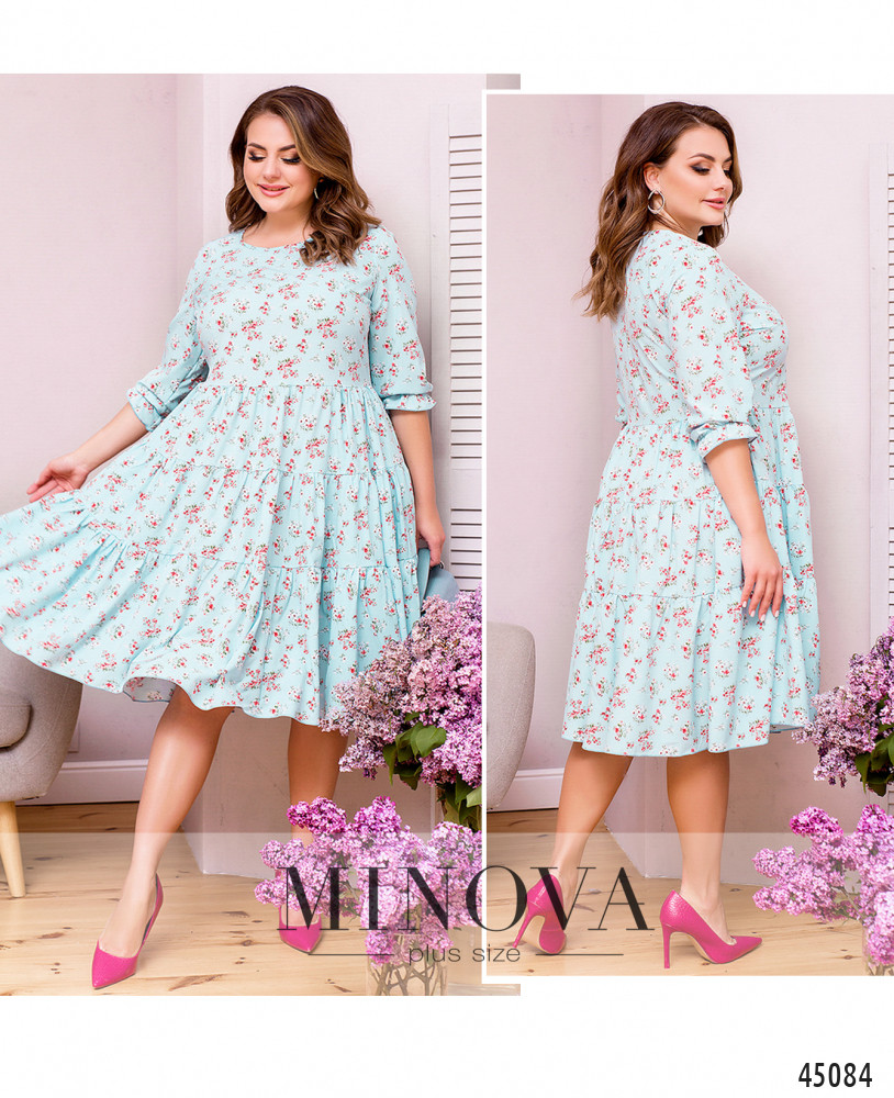 Нежное воздушное платье из тонкого летящего материала без застежек и карманов. Подол подшит к лифу и состоит из нескольких слоев оборок. Вырез горловины полукруглый. Женственные рукава ¾ с небольшой оборкой делают эту модель универсальной для весеннего и летнего сезонов.