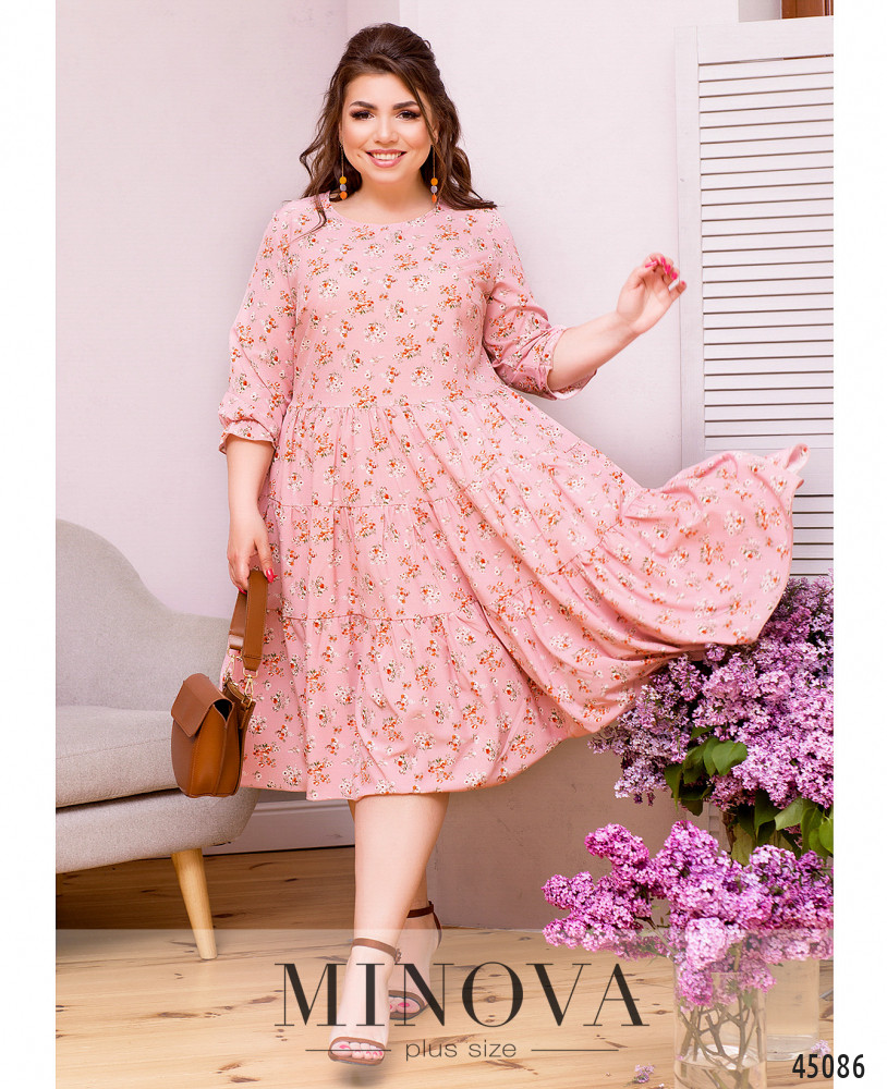Нежное воздушное платье из тонкого летящего материала без застежек и карманов. Подол подшит к лифу и состоит из нескольких слоев оборок. Вырез горловины полукруглый. Женственные рукава ¾ с небольшой оборкой делают эту модель универсальной для весеннего и летнего сезонов.
