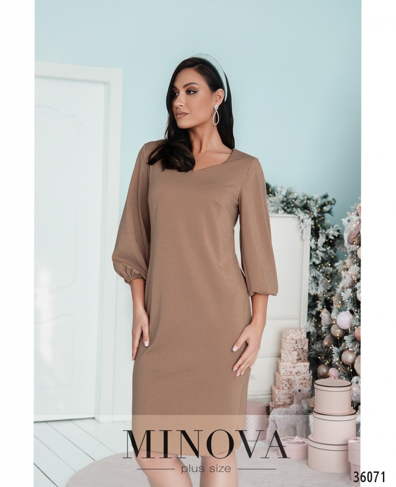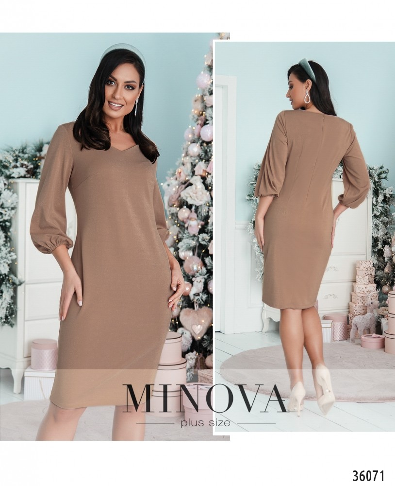 Приталенное платье батал от Minova выглядит на первый взгляд довольно простым, но на самом деле оно нарядное – благодаря нитям люрекса, пропущенным через ткань. Платье очаровательно переливается при электрическом освещении. Изнутри ткань мягкая, приятная к телу. На груди – небольшие вытачки, карманов нет. Рукава полной длины, с резинками, вшитыми на месте манжет. Застёгивается на вшитую по спинке змейку. Вырез горловины полукруглый, но с заострённым низом, неглубокий. Однотонная расцветка и минималистичный дизайн дают возможность выбирать каждый раз разные аксессуары и обувь, создавая новые образы.