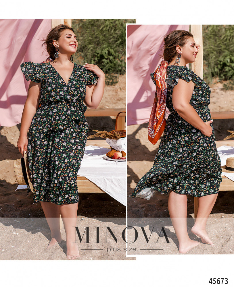Очаровательное приталенное платье с резинкой, вшитой по линии талии, выполнено из натуральной ткани с контрастным принтом. В этой модели с воздушными рукавами-крылышками, глубоким V-образным декольте, подшитым на запАх, и воланом по краю подола вы сможете создать нежный и чувственный образ на каждый день. Дополните его текстильным поясом в тон, который идет в комплекте