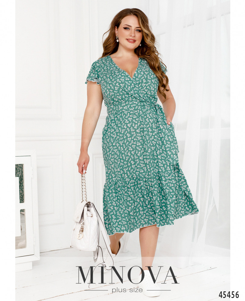 Очаровательное приталенное платье с резинкой, вшитой по линии талии, выполнено из натуральной ткани с контрастным принтом. В этой модели с воздушными рукавами-крылышками, глубоким V-образным декольте, подшитым на запАх, и воланом по краю подола вы сможете создать нежный и чувственный образ на каждый день. Дополните его текстильным поясом в тон, который идет в комплекте