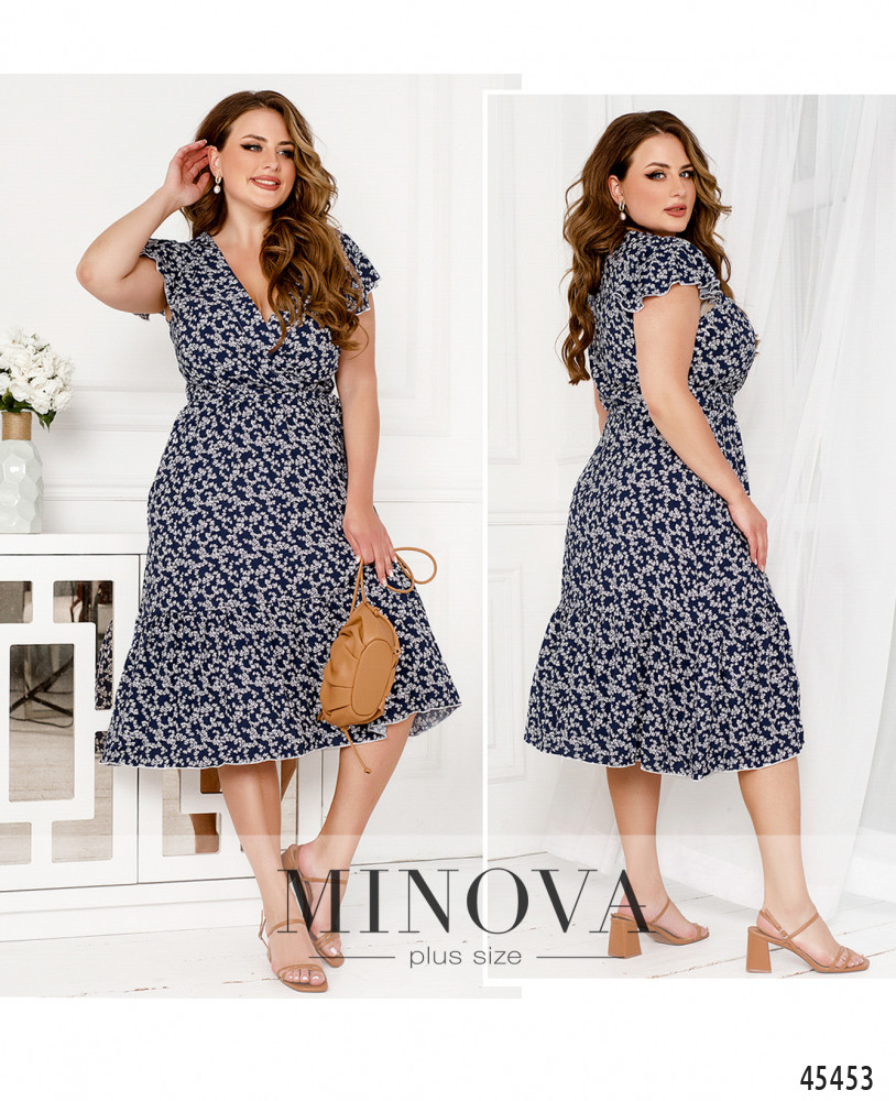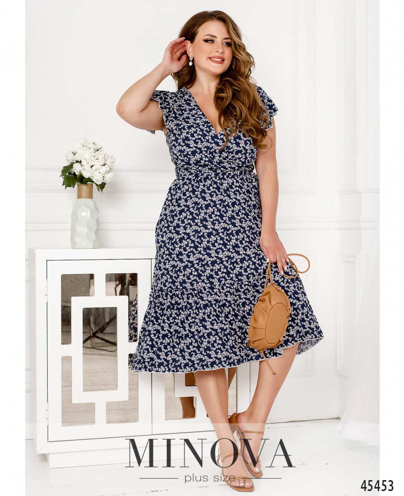 Очаровательное приталенное платье с резинкой, вшитой по линии талии, выполнено из натуральной ткани с контрастным принтом. В этой модели с воздушными рукавами-крылышками, глубоким V-образным декольте, подшитым на запАх, и воланом по краю подола вы сможете создать нежный и чувственный образ на каждый день. Дополните его текстильным поясом в тон, который идет в комплекте