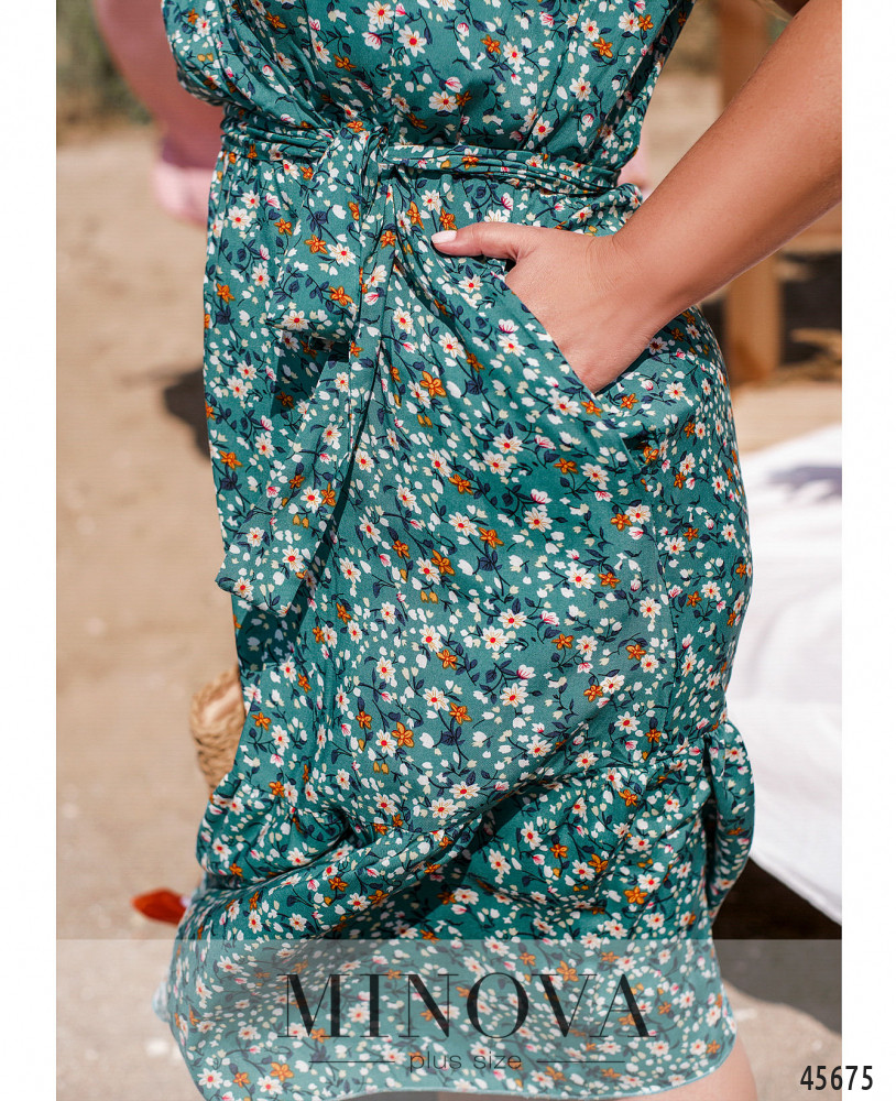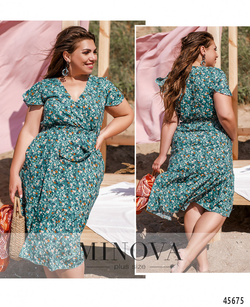 Очаровательное приталенное платье с резинкой, вшитой по линии талии, выполнено из натуральной ткани с контрастным принтом. В этой модели с воздушными рукавами-крылышками, глубоким V-образным декольте, подшитым на запАх, и воланом по краю подола вы сможете создать нежный и чувственный образ на каждый день. Дополните его текстильным поясом в тон, который идет в комплекте