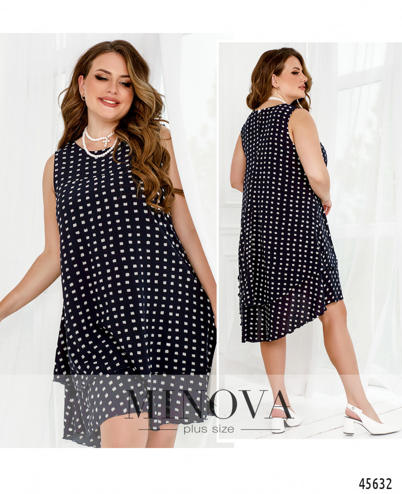Воздушное летнее платье А-силуэта добавит в ваш образ чуточку кокетства, романтизма и женственности. Изюминкой этой модели является двуслойный ассиметричный подол, удлиненный по спинке и ниспадающий мягкими складками. Платье застегивается сзади на маленькую пуговку под шеей. Пояс НЕ входит в комплект.
