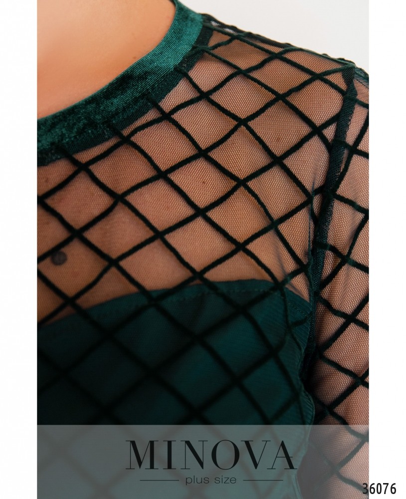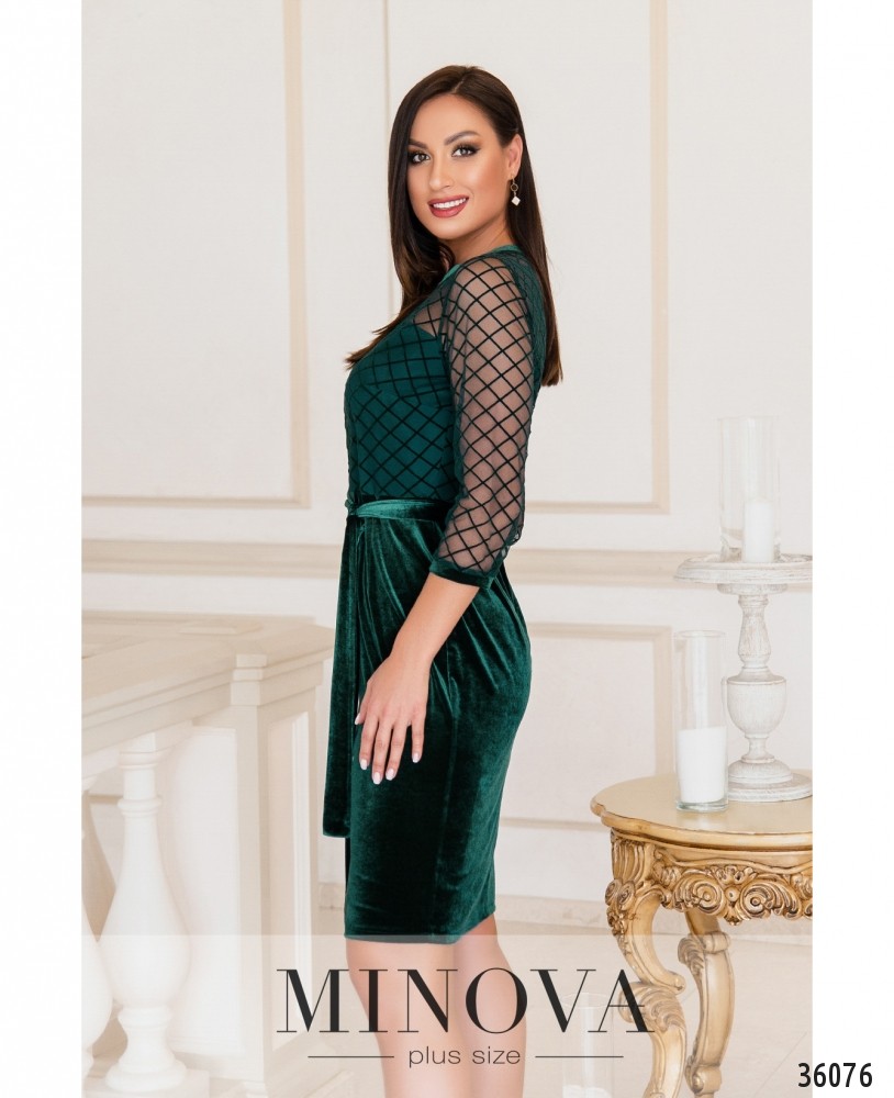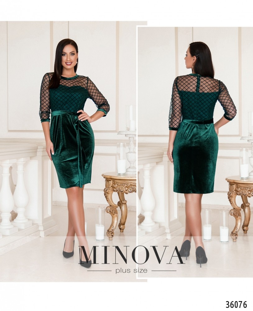 Очаровательное, очень женственное и нарядное приталенное платье батал – в новом каталоге Minova. Платье визуально состоит из двух частей: однотонного мягкого подола и верха в сеточку, с бархатными квадратиками. Под сеточкой подшита подкладка, так что верх не просвечивает (кроме плеч), а рукава полностью из сеточки с небольшими манжетами. На груди – вытачки, вырез горловины полукруглый и оторочен более плотной тканью. Карманов нет, змейка вшита по спине. В комплекте прилагается пояс в тон, и вы можете дополнить свой образ обувью на высоком кабулке и яркими аксессуарами.