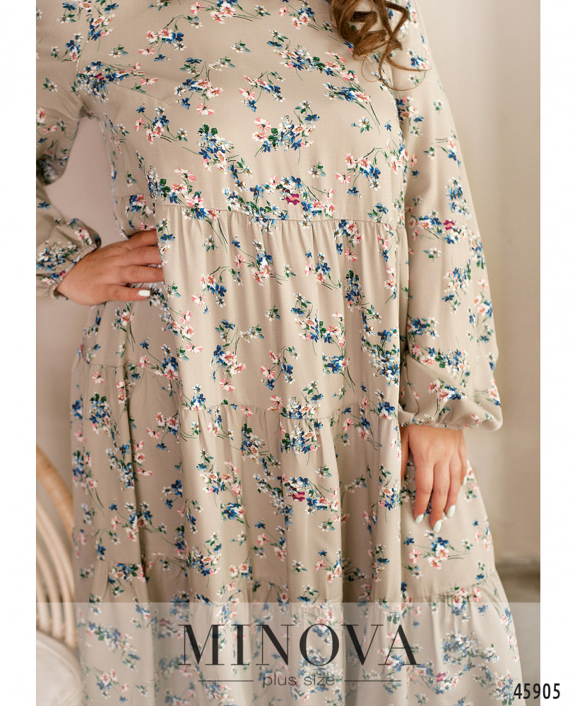 Романтичное женственное платье с длинными рукавами на резинках, выполненное из легкой мягкой ткани, подойдет и для прогулки с друзьями, и для поездки за город. Благодаря просторному А-силуэту вы будете чувствовать себя свободно и комфортно, а подол, состоящих из нескольких слоев оборок, сделает ваш образ кокетливым и женственным.