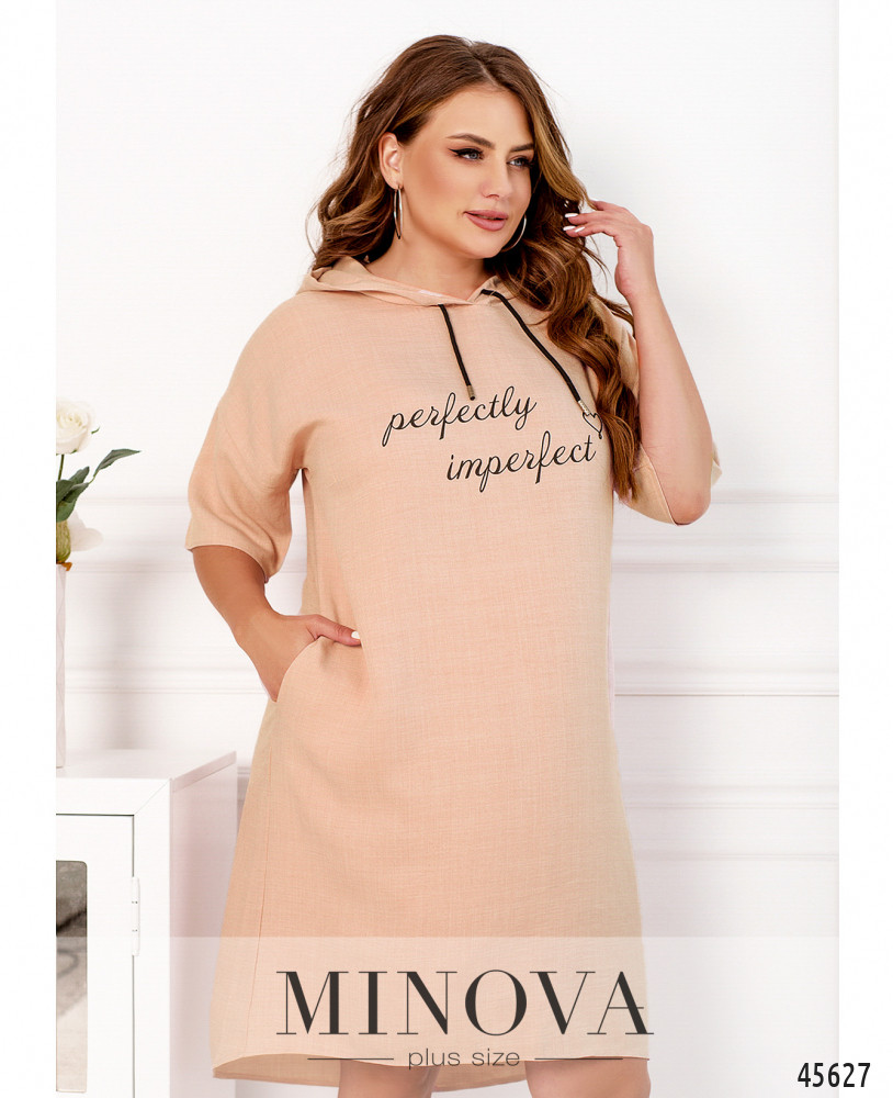 Минималистичное платье в спортивном стиле с декоративным принтом на груди отличается универсальностью, удобством и практичностью. Эта модель дополнена капюшоном на кулиске, короткими рукавами с приспущенной линией плеч и карманами в боковых швах Пояс НЕ входит в комплект.