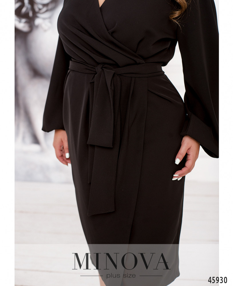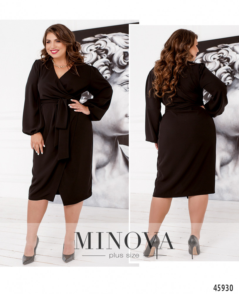 Стильное однотонное платье с длинными объемными рукавами на резинках может в полной мере подчеркнуть достоинства фигуры и помочь создать женственный и нежный образ. Модель завязывается на запАх, что позволяет регулировать ее посадку на талии. Дополните образ широким текстильным поясом, который входит в комплект.