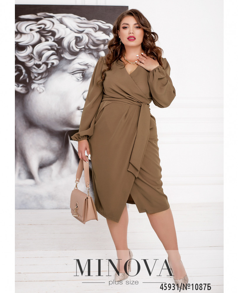 Стильное однотонное платье с длинными объемными рукавами на резинках может в полной мере подчеркнуть достоинства фигуры и помочь создать женственный и нежный образ. Модель завязывается на запАх, что позволяет регулировать ее посадку на талии. Дополните образ широким текстильным поясом, который входит в комплект.