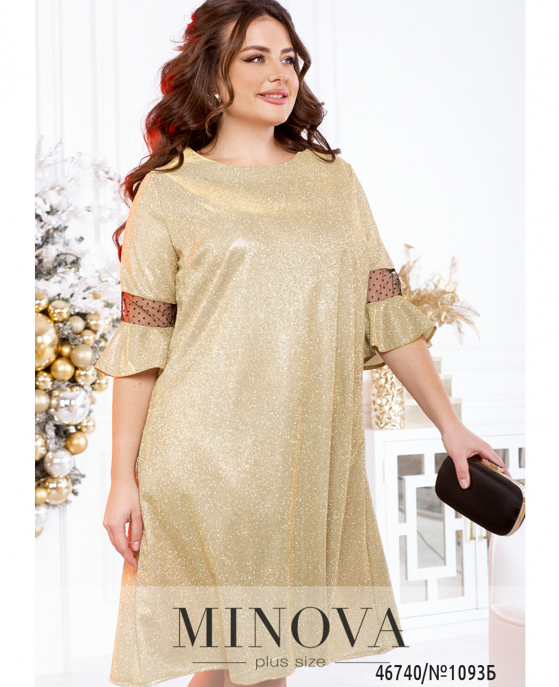Нарядное женственное платье, выполненное из сияющей ткани, позволит вам подчеркнуть хрупкость и утонченность вашей фигуры. Модель А-силуэта без застежек дополнена изящными рукавами 3/1 с оборкой и ажурной вставкой из сетки.
