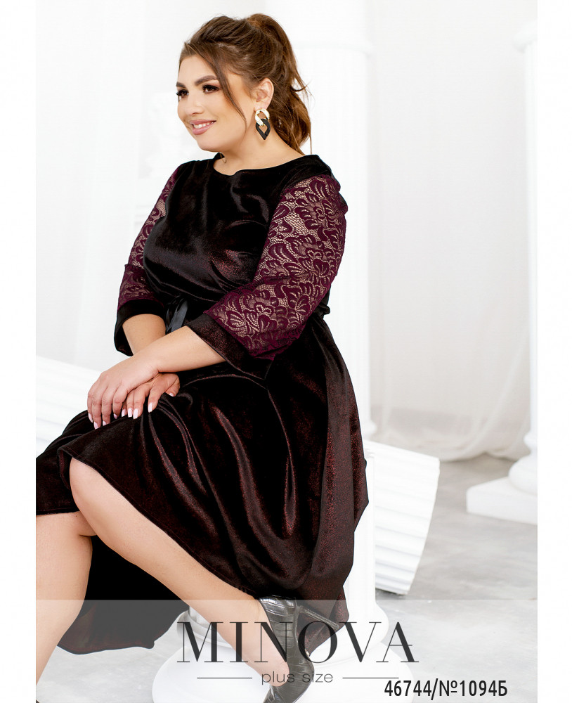 Женственное платье, выполненное из нарядной велюровой ткани, - идеальный вариант для праздника или вечеринки. Модель приталенного силуэта с тонким шнурком под кулиской, пропущенным по линии талии, привлекает внимание воздушным подолом, ниспадающим мягкими складками, и ажурными рукавами 3/4 с манжетами.