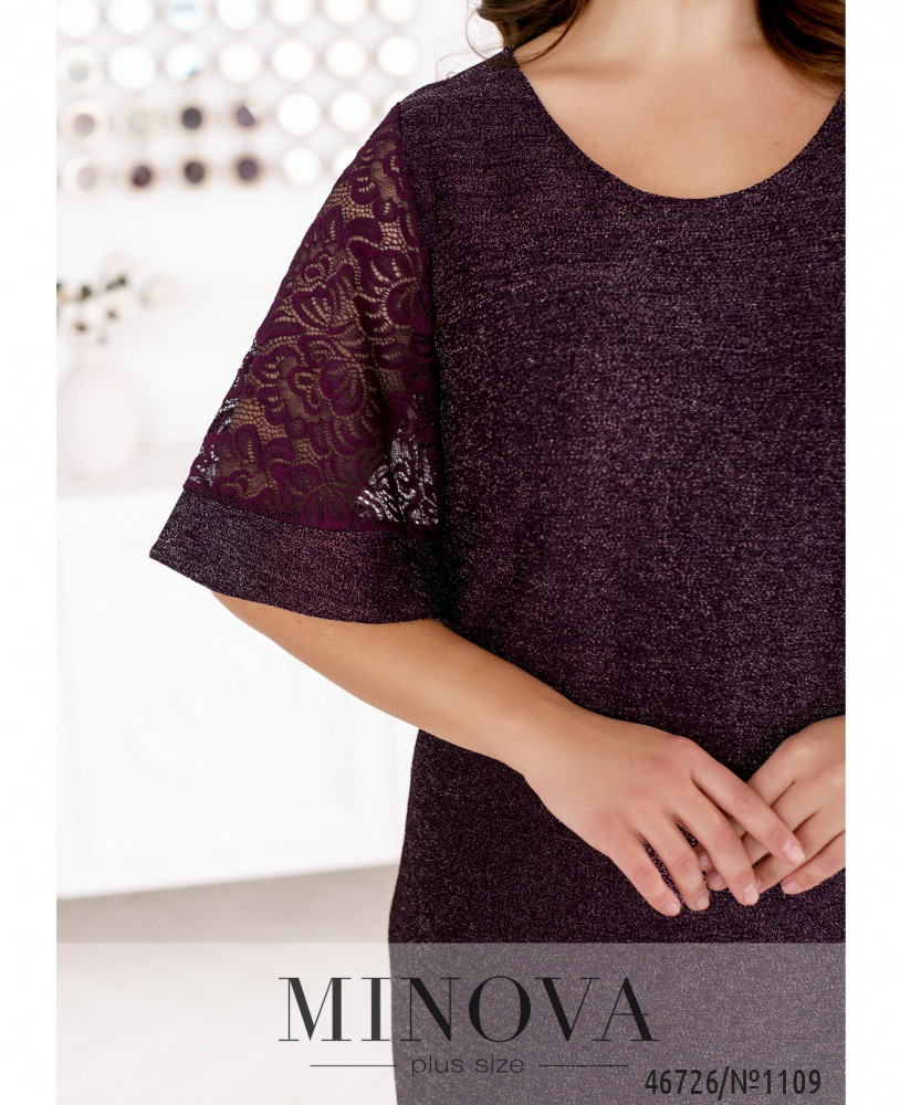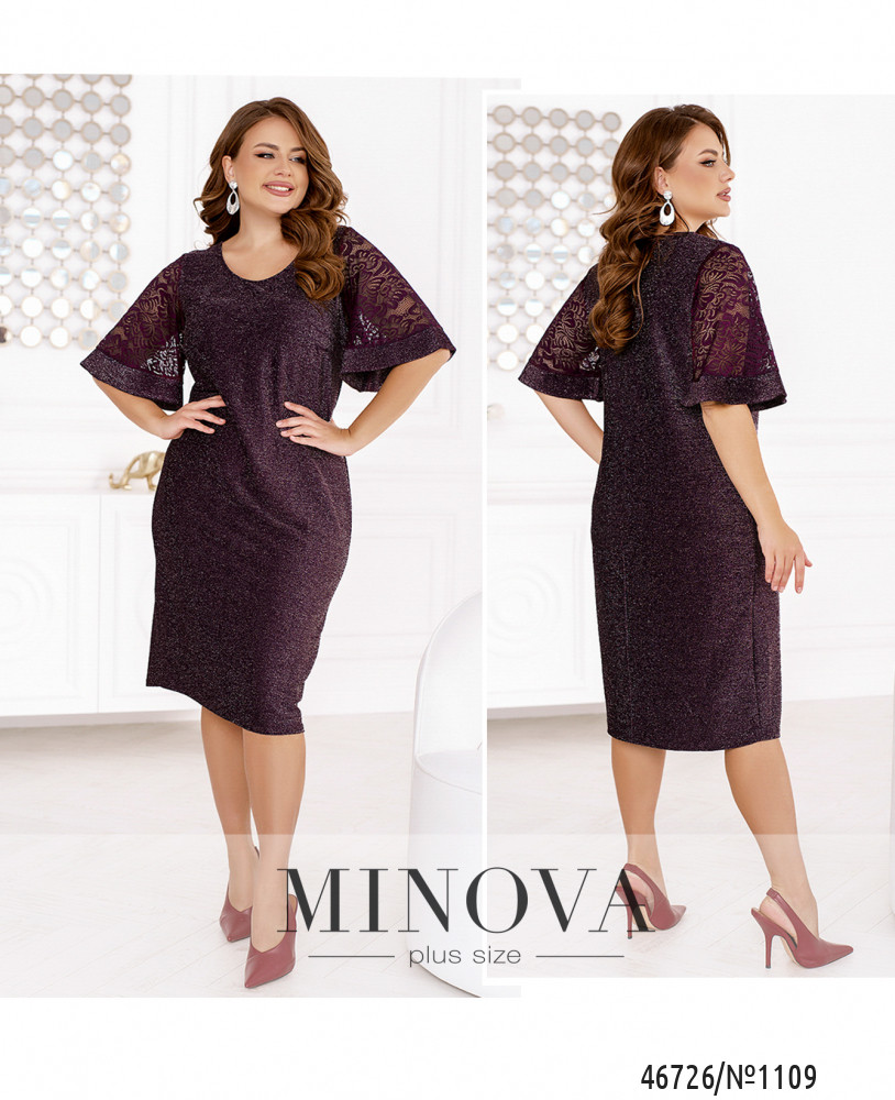 Если вы из тех, кто в самую главную ночь года хочет выглядеть ярче всех, блестящее платье – самый подходящий для вас вариант. Эта модель привлекает внимание не только мерцающей люрексовой текстурой, но и расклешенными кружевными рукавами с сияющими манжетами.