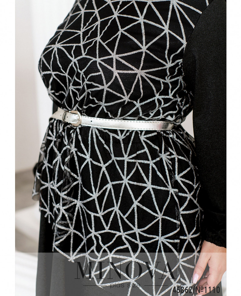 Элегантное платье батал с двуслойным лифом, идеально садятся по фигуре, вне зависимости от ее особенностей. Верхняя часть лифа - ассиметричная и мерцающая, а нижняя часть, рукава и подол выполнены из однотонной ткани. Модель без карманов дополнена длинными рукавами, в запястья которых вшиты резинки. Платье застегивается на маленькую пуговку сзади под шеей.