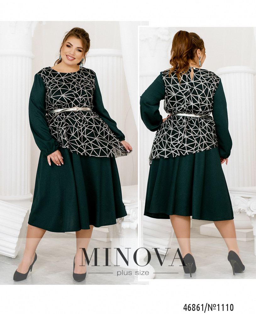 52-54 р-р: длина платья 105см, длина рукава от плечевого шва 61,5см, обхват рукава 42см, ОГ - 110см, ОТ -106см.